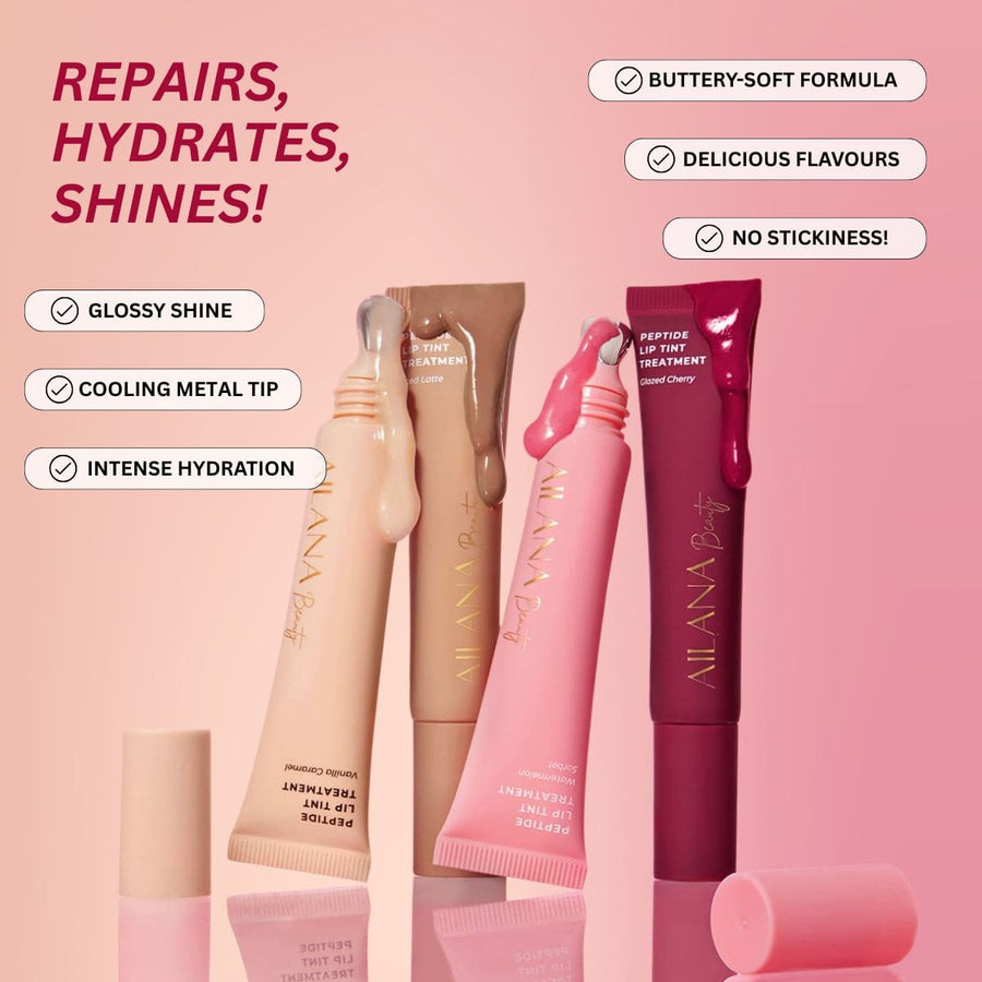Our 4x Premium Shades all in one Bundle! Next-level lip treatment infused with peptides, hyaluronic acid and vitamin E to hydrate, smooth and visibly plump. Shea, Murumuru and Mango butters deeply nourish for long-lasting, ultra-soft lips with a glossy sheer tint and a non-sticky finish.